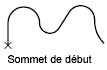Marque le premier sommet de la polyligne en dessinant un X à l'écran. Si vous avez spécifié une direction de tangente pour ce sommet, une flèche est également dessinée dans ce sens.
