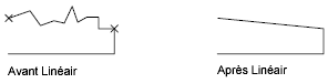 Supprime les sommets supplémentaires insérés par une courbe de lissage ou une spline et transforme tous les segments de la polyligne en droites. Conserve les informations de tangente attribuées aux sommets de la polyligne en vue de la création de courbes de lissage. Si vous modifiez une polyligne lissée à l'aide d'une commande telle que COUPURE ou AJUSTER, vous ne pouvez pas utiliser l'option Redresser.
