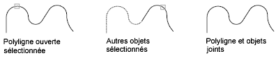L'option Joindre de la commande PEDIT redresse la spline, puis élimine les informations de spline présentes dans la polyligne d'origine et dans celles ayant été ajoutées. Une fois l'opération de jointure terminée, vous pouvez lisser une nouvelle spline pour obtenir la polyligne.