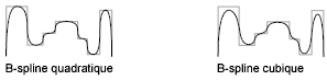 Les polylignes à lissage de spline sont très différentes des autres courbes générées à l'aide de l'option de lissage. Cette option permet d'obtenir des paires d'arcs passant par chaque point de contrôle. Ces deux courbes sont différentes des vraies courbes B-splines créées à l'aide de la commande SPLINE.