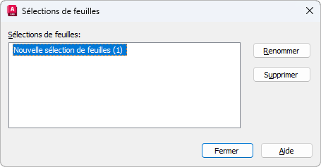 Renomme ou supprime des sélections de feuilles enregistrées.