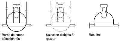 Vous pouvez raccourcir ou allonger des objets pour qu'ils touchent les bords d'autres objets.