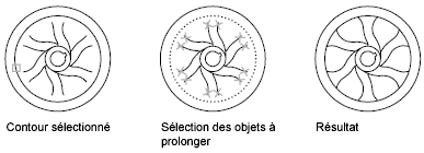 Vous pouvez prolonger des objets jusqu’au contour défini par d’autres objets. L'exemple suivant montre comment prolonger des lignes jusqu'à un cercle, qui représente le contour.