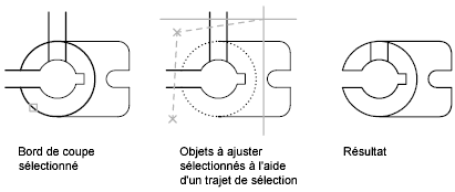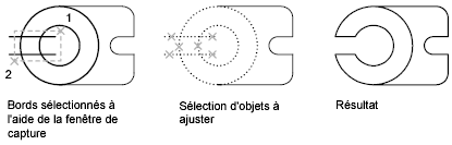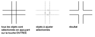 Après avoir lancé les commandes AJUSTER ou PROLONGER, il vous suffit de sélectionner les objets situés près des extrémités à ajuster ou à prolonger. Il existe trois options par défaut pour sélectionner les objets :
