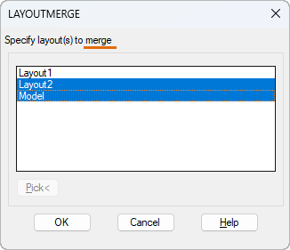 Specify layout(s) to merge or [?]: Présentation1,Présentation2 Entrez des noms de présentations et/ou des caractères génériques séparés par une virgule