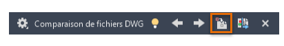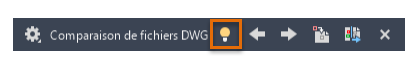 - Cliquez sur l'icône en forme d'ampoule située à côté de l'option Pas dans le dessin courant ou Seulement dans le dessin courant pour activer/désactiver la visibilité des différences entre les fichiers comparés ou les fichiers du dessin courant.