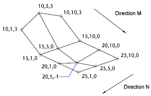 Lorsque vous créez le maillage, vous spécifiez la taille du maillage dans les directions M et N. Le nombre total de sommets que vous spécifiez pour le maillage est égal au produit des valeurs M et N.