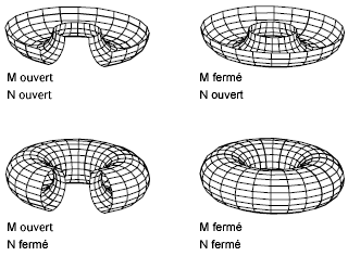 Les maillages peuvent être ouverts ou fermés, Si les arêtes de début et de fin du maillage ne se touchent pas, un maillage est ouvert dans une direction donnée, comme indiqué dans les illustrations suivantes.