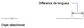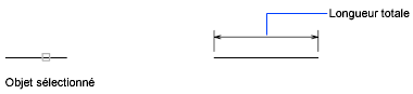 Modifie la longueur de l'objet sélectionné en définissant sa longueur absolue totale à partir de l'extrémité fixe. Cette commande définit également l'angle décrit d'un arc sélectionné selon l'angle total indiqué.