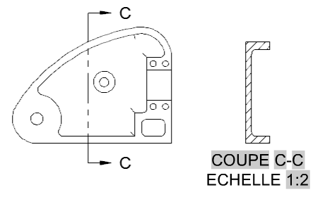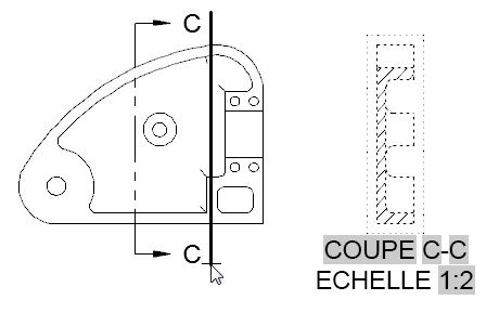 • Section. Toutes les géométries situées au-delà du plan de coupe de la ligne de coupe sont supprimées de la vue en coupe et cette dernière représente une fine section.