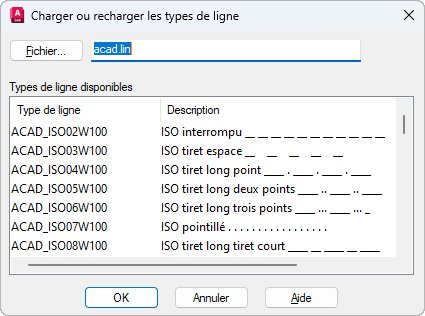 Charge un type de ligne dont la définition existe dans un fichier bibliothèque de types de ligne (LIN).