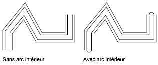 Génère un arc entre des paires d'éléments internes. Si le nombre d'éléments est impair, l'axe central ne sera pas attaché. Si elle comporte six éléments, par exemple, AutoCAD trace des arcs intérieurs entre les éléments2 et5 et les éléments3 et4. Si elle comporte sept éléments, AutoCAD trace des arcs intérieurs entre les éléments 2 et 6 et les éléments 3 et 5. L'élément 4 n'est pas connecté.