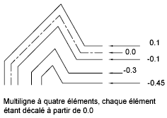 Affiche tous les éléments dans le style de multiligne courant. Chaque élément du style est défini par son décalage par rapport au milieu de la multiligne, sa couleur et son type de ligne. Les éléments sont toujours affichés dans l'ordre décroissant de leur décalage.