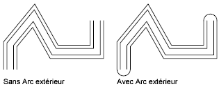 Génère un arc entre les éléments les plus à l'extérieur de la multiligne.