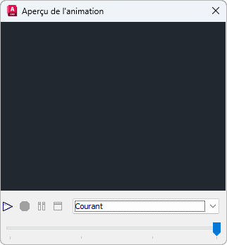 Affiche un aperçu de l'animation que vous avez définie dans la boîte de dialogue Animation de la trajectoire du mouvement, ou enregistrée à partir d'une navigation ou d'un mouvement depuis le ruban.