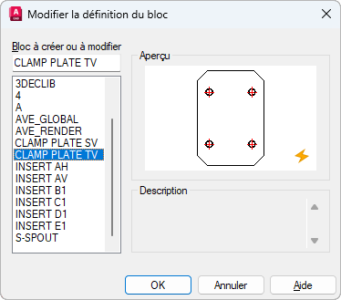 Affiche la description de la définition de bloc sélectionnée.