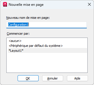Si vous ouvrez la boîte de dialogue Nouvelle mise en page depuis le gestionnaire du jeu de feuilles, seules les mises en page nommées dans le fichier des autres mises en page sont répertoriées.