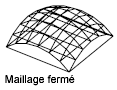 Les surfaces maillées créées à l'aide de la commande 3DMAILLE sont toujours ouvertes dans les directions M et N. Vous pouvez fermer un maillage à l'aide de la commande PEDIT.