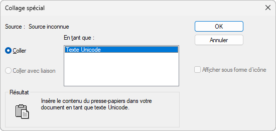 Colle le contenu du Presse-papiers dans le dessin courant. Si l'application source prend en charge une liaison OLE ou de données, un lien est créé avec le fichier d'origine.
