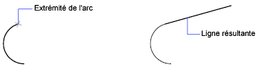 Immédiatement après avoir créé un arc, vous pouvez dessiner une ligne tangente à l'arc au niveau d'une extrémité. Il suffit de spécifier la longueur de la ligne.