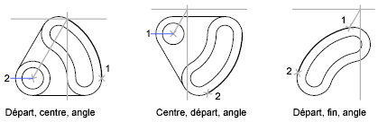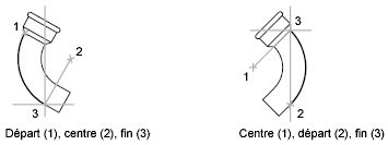 Vous pouvez créer un arc en utilisant un point de départ, un centre et un troisième point déterminant l'extrémité.