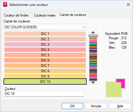 Indique le carnet de couleurs à utiliser lors de la sélection des couleurs.