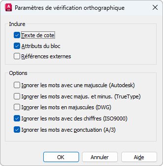 Permet d'indiquer les options de texte spécifique qui seront vérifiées dans votre dessin.