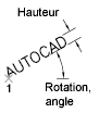 L'angle de rotation autour du centre détermine l'orientation de la ligne de base du texte. Vous pouvez définir cet angle en spécifiant un point. La ligne de base du texte s'étend du point de départ au point défini. Si vous spécifiez un point à gauche du centre, le texte est dessiné à l'envers.