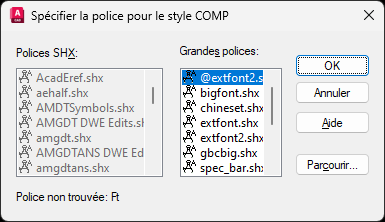 Si vous ouvrez un dessin sans fichier de police, cette boîte de dialogue s’affiche pour vous permettre de choisir un fichier de police pour le style.