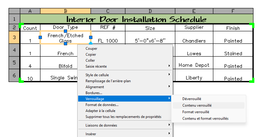 Les cellules sont verrouillées par défaut pour éviter que les données qu'elles contiennent ne soient accidentellement modifiées. Vous pouvez déverrouiller manuellement une cellule pour modifier son contenu. Lors de la mise à jour de la table, vous pouvez choisir entre remplacer le contenu des cellules ou ne pas mettre les cellules à jour.