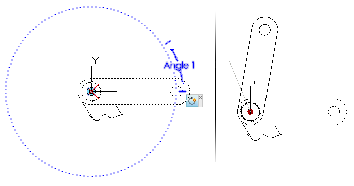Lorsque vous appliquez une action de rotation, vous pouvez décider de rendre le point de base de l'action dépendant ou indépendant du point de base du paramètre.