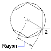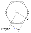 Si vous indiquez le rayon à l'aide d'un périphérique de pointage, vous définissez la rotation et la taille du polygone. Si le rayon est indiqué par une valeur, le côté inférieur du polygone est dessiné selon l'angle de rotation courant appliqué au pas de la grille.