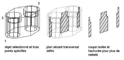 Vous pouvez créer une région 2D qui représente une coupe planaire dans un objet solide 3D. Vous ne pouvez pas réaliser de coupe 3D lorsque vous utilisez cette méthode.