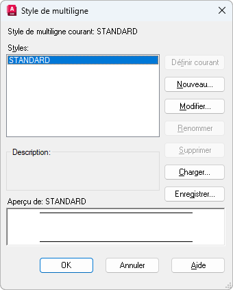 Renomme le style de multiligne en cours de sélection. Vous ne pouvez pas renommer le style de multiligne STANDARD.