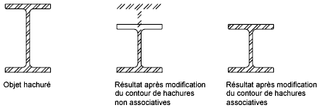 Par défaut, les hachures délimitées sont associatives, ce qui signifie que l'objet de hachures est associé aux objets de contours de hachures : les modifications apportées aux objets de contours sont automatiquement appliquées aux hachures.