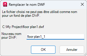 Boîte de dialogue Remplacer le nom du fichier DWF