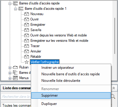 Suppression d'une commande ou d'un contrôle (éditeur Personnaliser l'interface utilisateur)