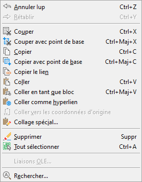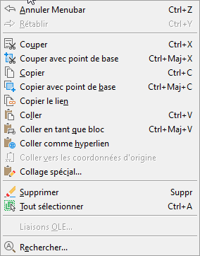 L'exemple suivant montre l'élément de menu Liaisons OLE dans le menu Edition marqué d'une coche et l'image de l'élément de menu Copier le lien est mise en surbrillance avec une bordure.