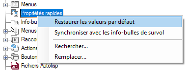 Restauration des paramètres par défaut du groupe de fonctions Propriétés rapides