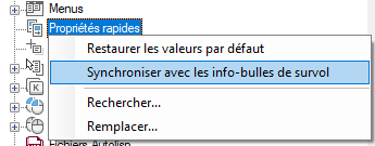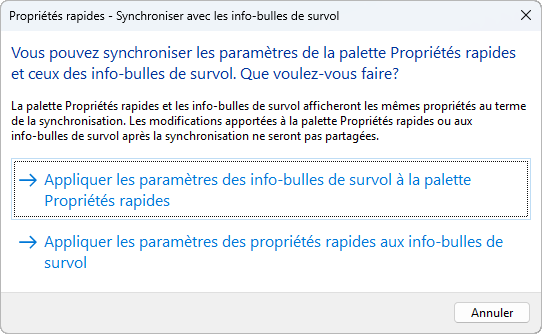 Synchronisation des propriétés rapides avec les info-bulles de survol