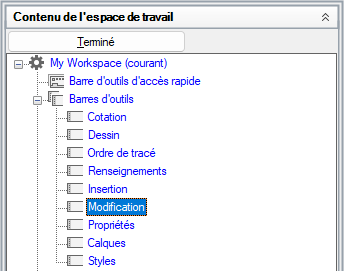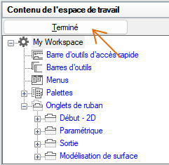 - Dans le volet Contenu de l'espace de travail, cliquez sur Personnaliser l'espace de travail.