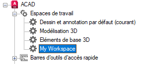 Remarque : Veillez à définir l'espace de travail comme courant pour que les modifications soient appliquées.