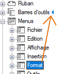 - Cliquez sur le signe plus (+) en regard de la barre d'outils qui contient la commande dont vous voulez modifier le texte de l'info-bulle.