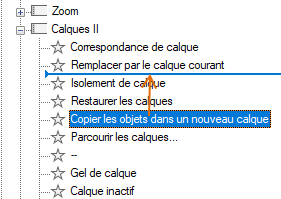 - Faites glisser le menu à partir duquel vous voulez créer une barre d'outils et déposez-le sur le nœud Barres d'outils.