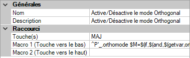 • Dans la zone Macro 1 (Touche vers le bas), entrez une macro à exécuter lorsque la touche de remplacement temporaire est utilisée et maintenue enfoncée. Lorsqu'aucune valeur n'est affectée, la macro par défaut est ^C^C.