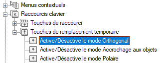 1. Dans le volet Personnalisations dans <nom de fichier> de l'onglet Personnaliser, cliquez sur le noeud Raccourcis clavier.
