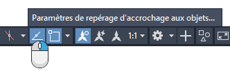 | Repérage par accrochage aux objets | Suit le curseur horizontalement et verticalement à partir des emplacements d'accrochage aux objets. |