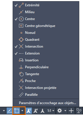 | Accrochage aux objets | Active/désactive l'accrochage aux objets. |