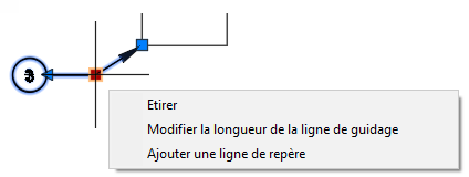 Remarque : Lorsque vous repositionnez la poignée à l’extrémité de la pointe de flèche, cela met fin à son associativité. Vous devrez utiliser la commande DIMREASSOC pour réassocier la pointe de flèche à l’emplacement d’accrochage aux objets d’un objet.