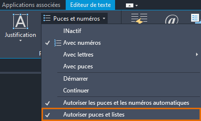 Remarque : Le format de liste n'est possible que si vous cochez l'option Autoriser les puces et listes.